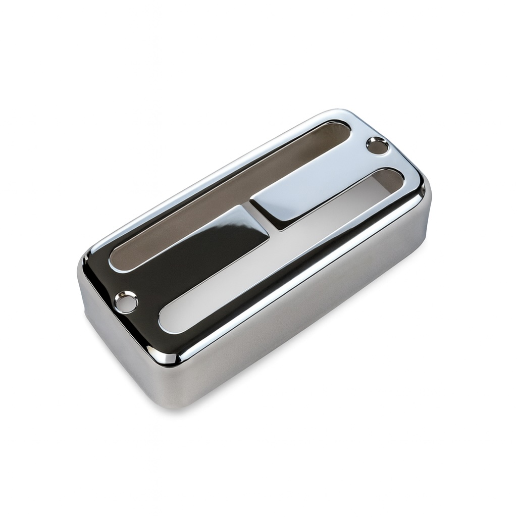 Brass Chrome Plated pickup cover for building or repairing Filtertron style humbucking pickups.