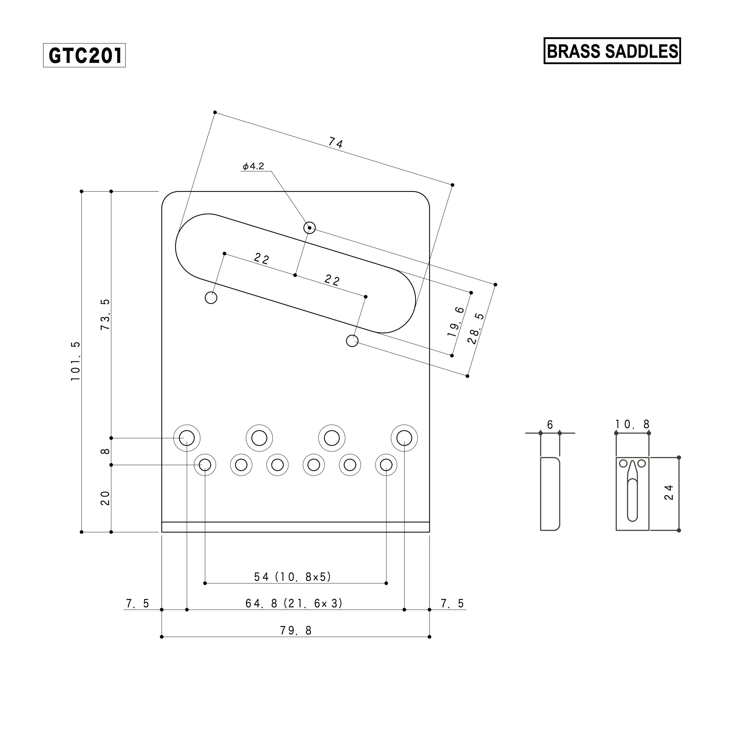 - 6 individual brass saddles: Fully adjustable saddles for precise intonation and string height control on each string.