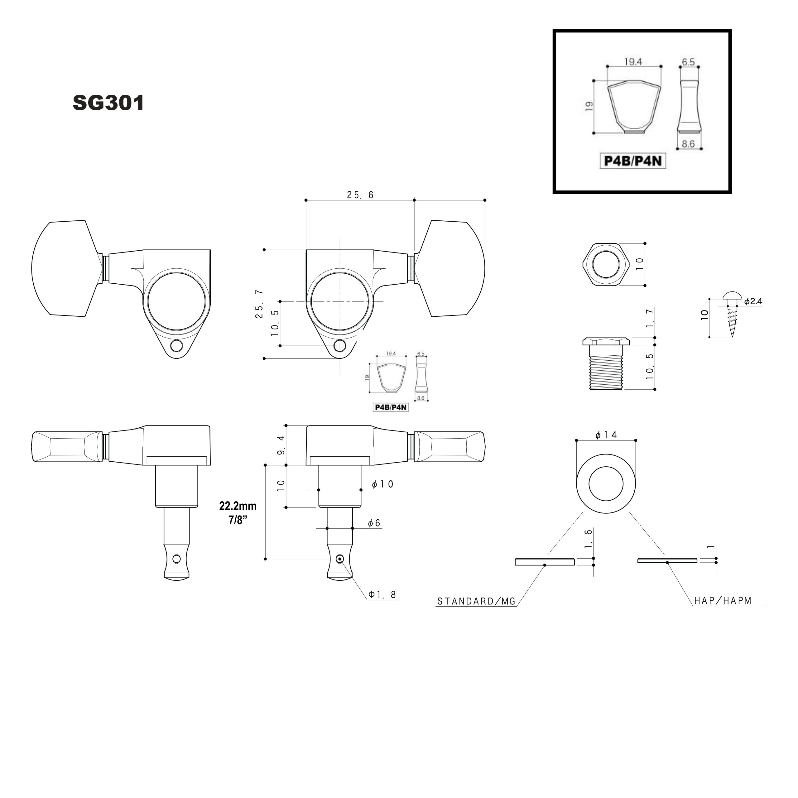 Gotoh Tuners SG301-P4N – Black – 3 per side – For Les Paul – 05112BX