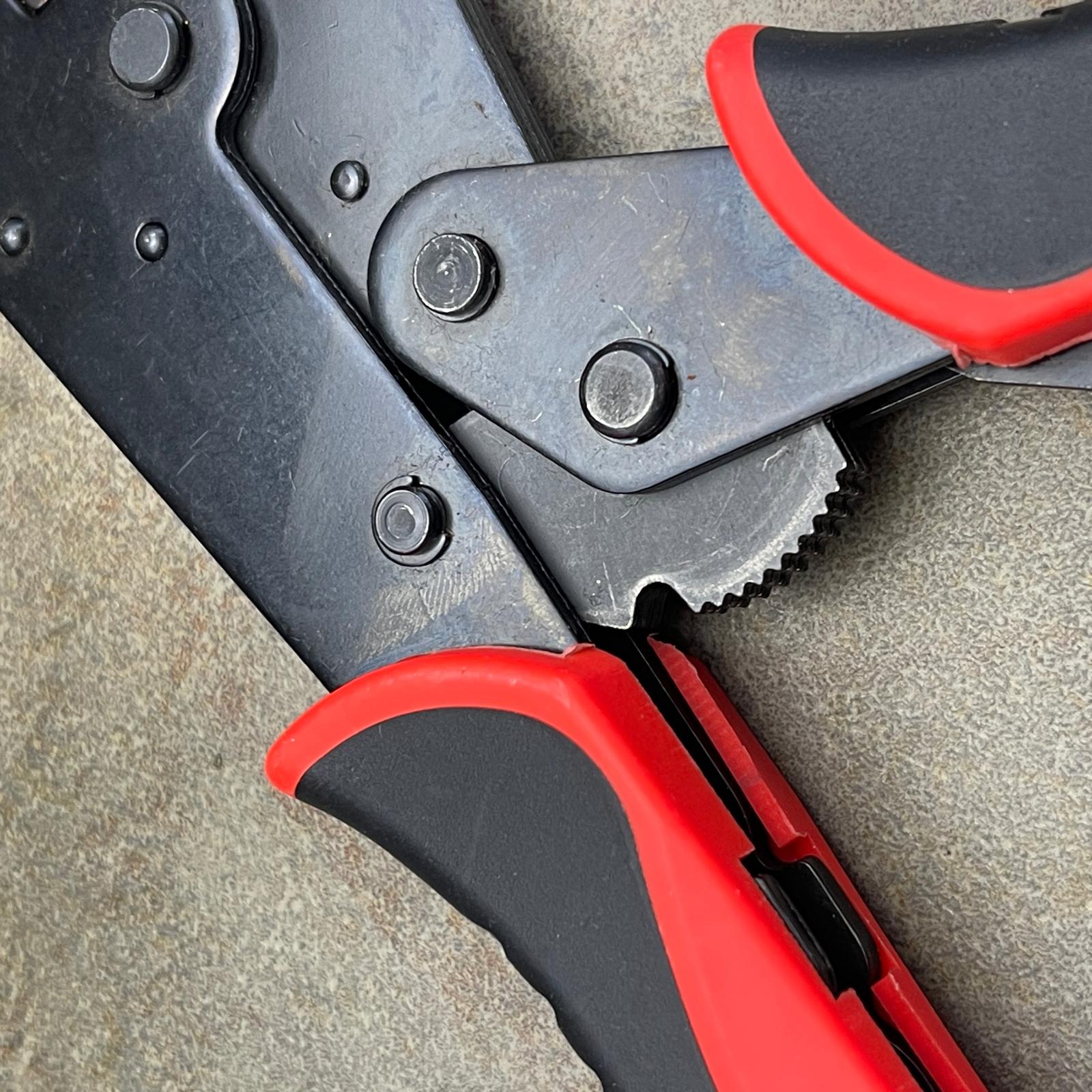 PROFESSIONAL CRIMPING TOOL—This hand crimper has an efficient ratcheting mechanism and professional-grade crimping die for rock-solid crimps every time. It works best with insulated nylon electrical terminals.